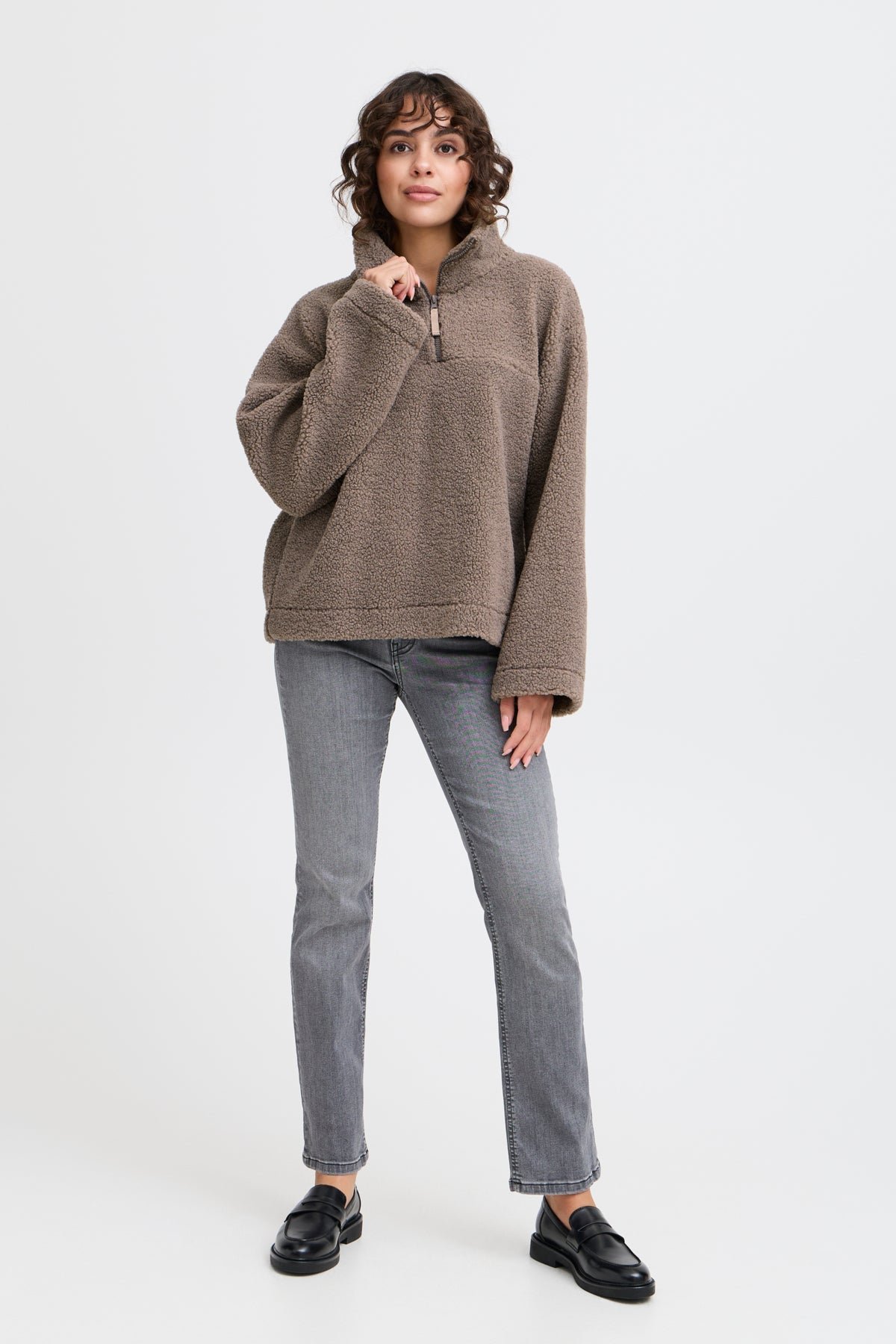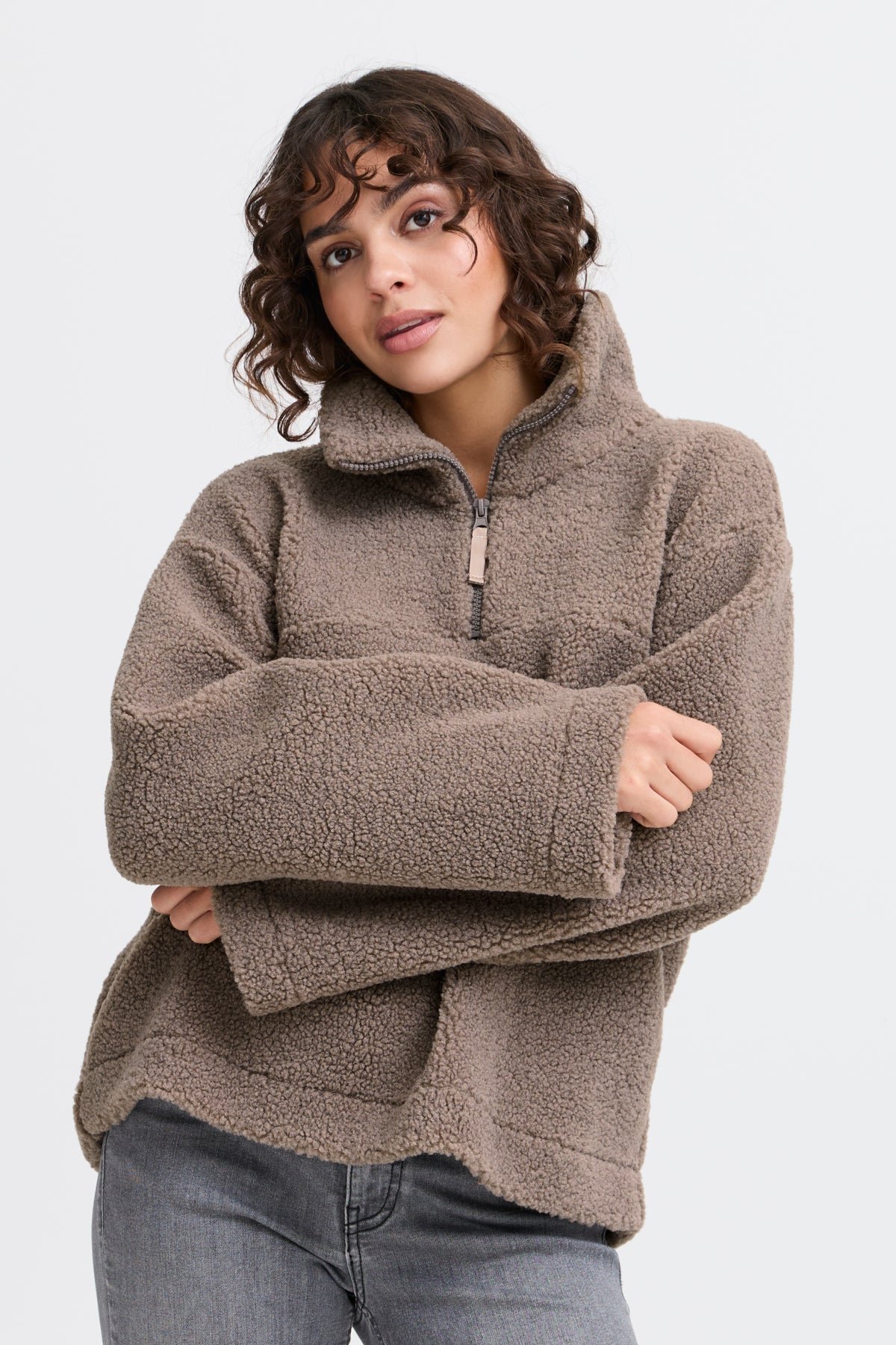 Wrap yourself in cozy comfort with the Frmikala Jacket 2. Made from soft fleece. this quarter zip top features wide. cozy sleeves and a regular. slightly boxy fit for a relaxed look. With a high neck. it's the perfect transitional season piece to keep you warm and stylish. From Fransa. this top is a must-have for your wardrobe.