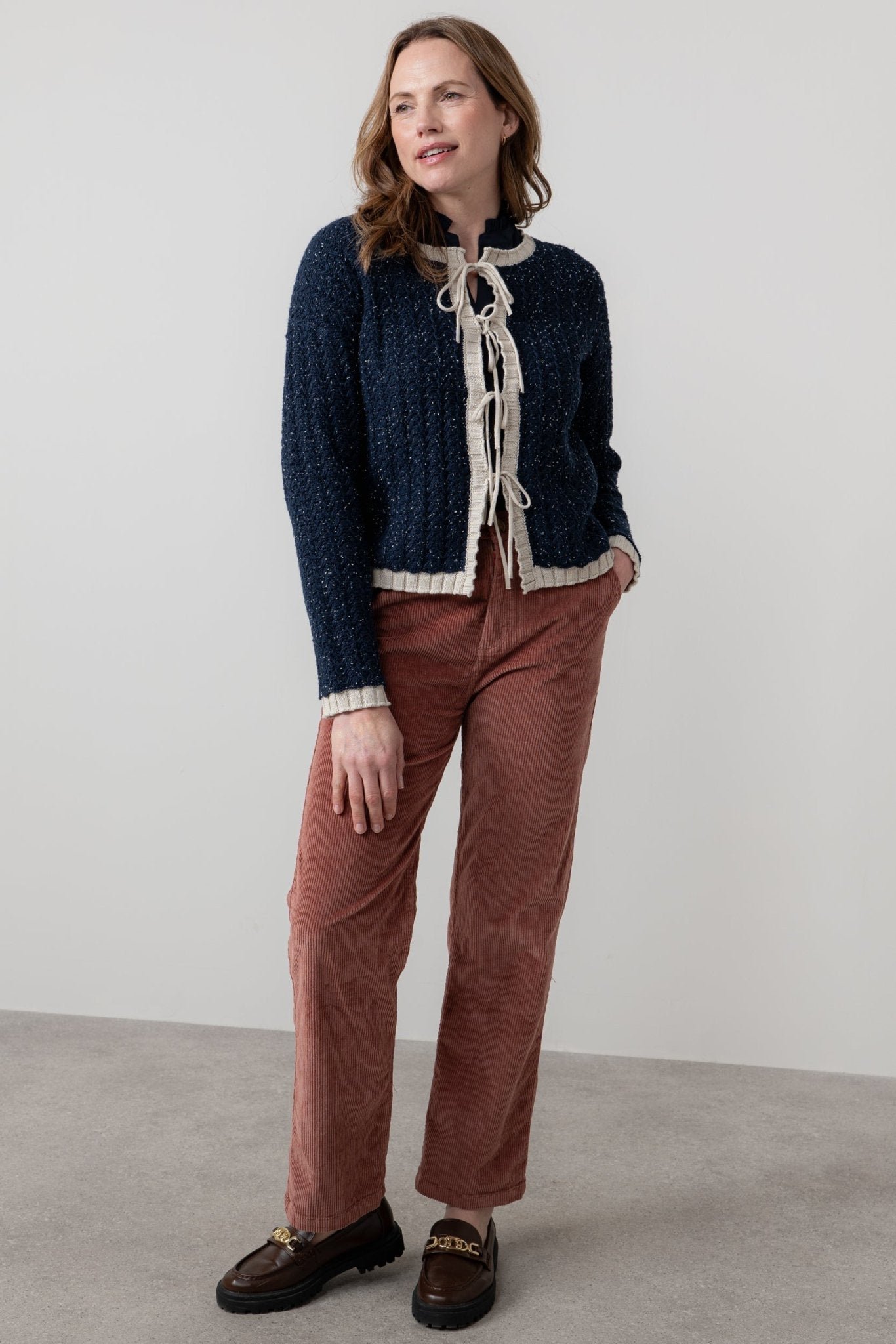 Embrace timeless elegance with the Lily And Me Adelia Cardi in a charming fleck knit. This long-sleeve navy cardigan offers a comfortable regular fit. perfect for layering on cool days. Its versatile style brings understated sophistication to any outfit. inspiring confidence and effortless grace wherever you go.