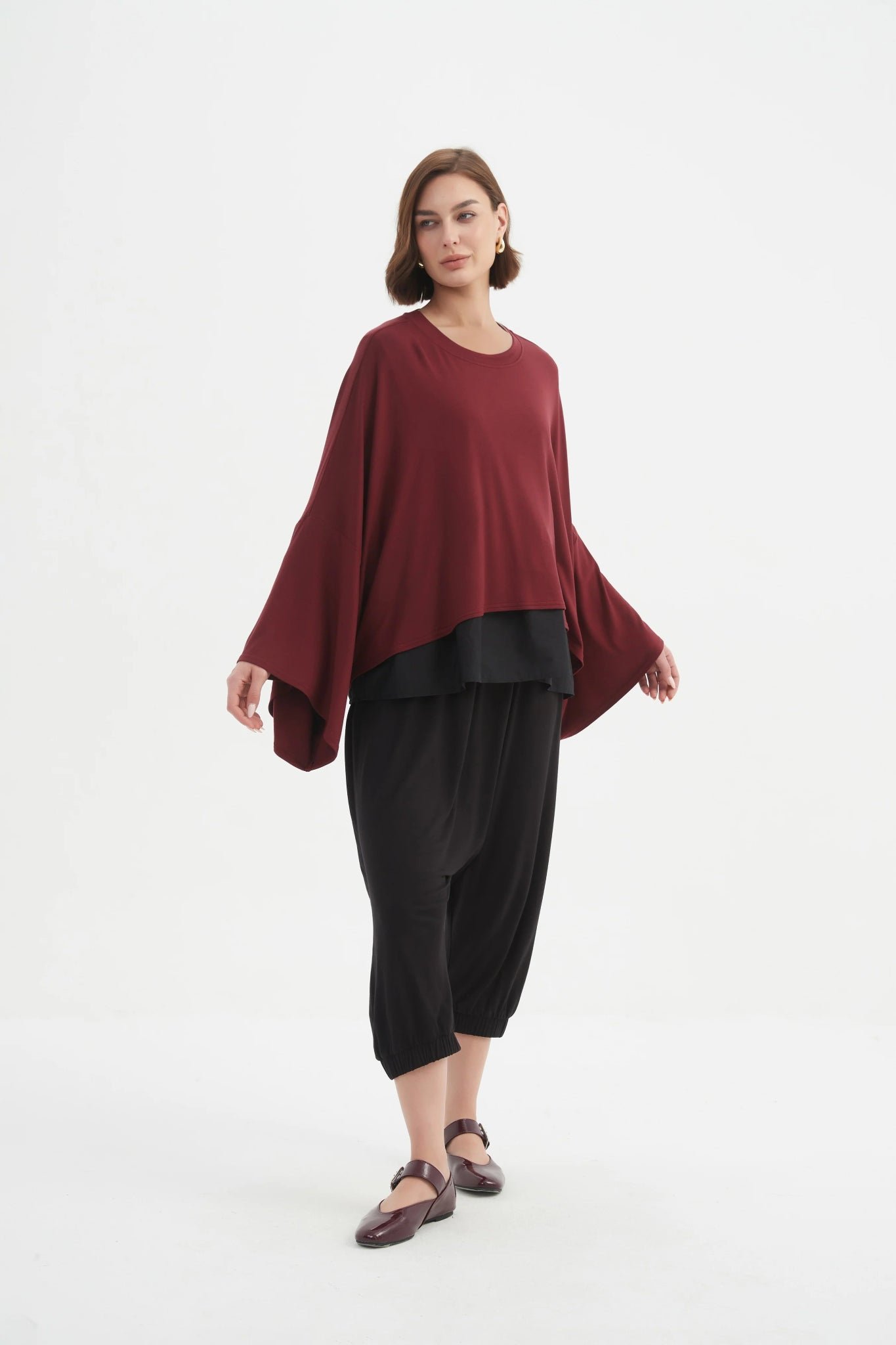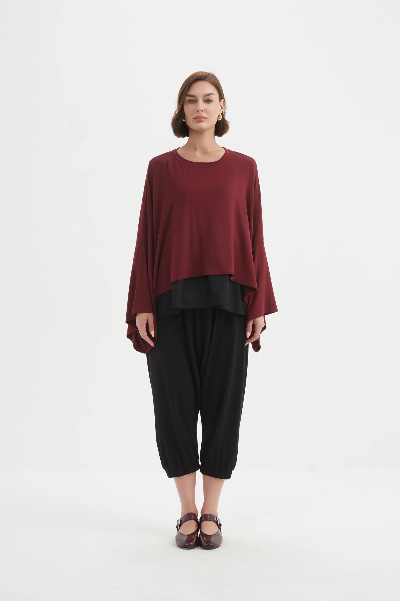 The same effortless layer you know and love. now in a heavier-weight jersey for the cooler months. Designed for comfort and ease. this top features an oversized fit. cropped length. and wide long sleeves. creating a relaxed yet considered silhouette. The perfect layering piece for everyday wear.