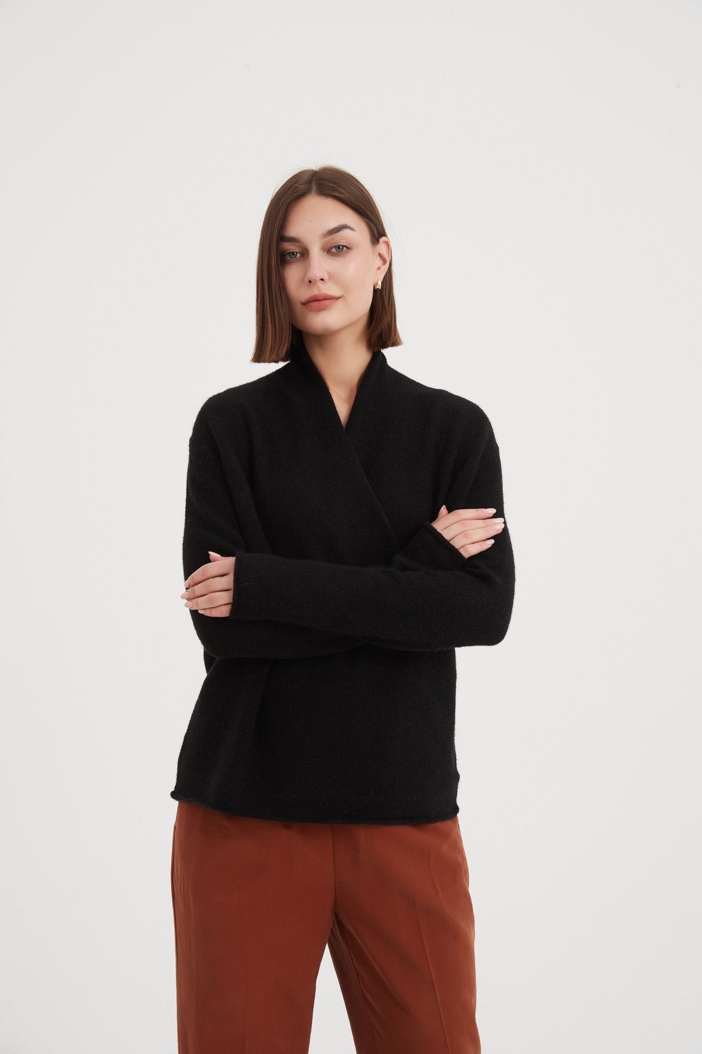 Indulge in effortless elegance with Tirelli clothing's Wrap Front Knit. The timeless design features a flattering wrap front and V-neckline. perfect for elevating any outfit. Whether at the office or out and about. the knit promises sophistication and comfort. Timeless. versatile. and stylish – the perfect addition to your wardrobe.