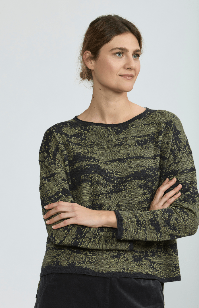 Stay cozy this winter with our Soft Crew Neck Jumper! This stylish Vetono top features a playful green and black pattern in a soft. boxy shape. With a crew neck. long sleeves. and regular fit. it's the perfect addition to any winter wardrobe. (Winter just got a lot more fun!)